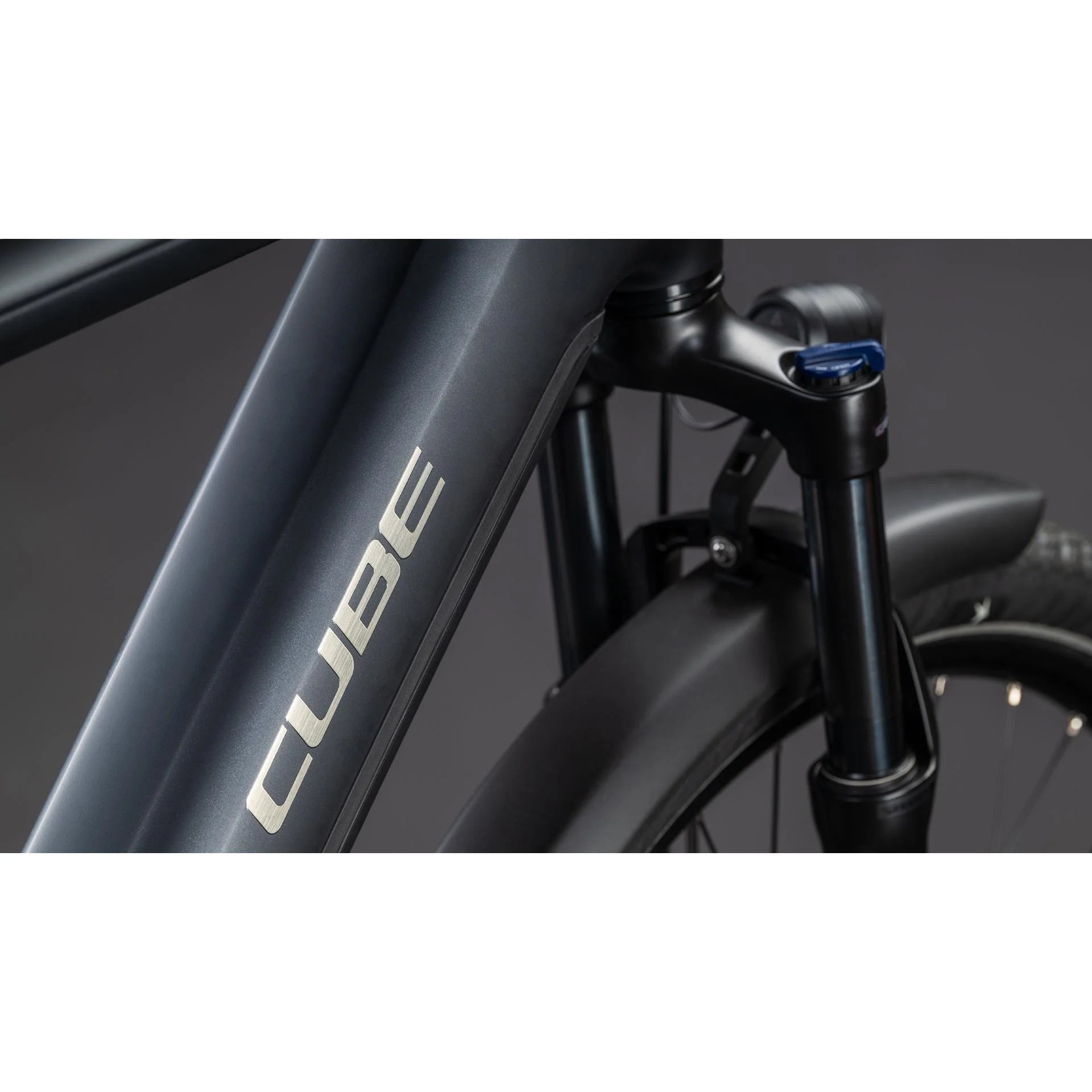 The Cube Touring Hybrid ONE 600 Electric Hybrid Bike in Coal'n'Chrome is a versatile and robust e-bike designed for both urban commuting and countryside adventures. Equipped with a powerful Bosch Performance Line motor delivering 75Nm of torque, it ensures smooth and efficient rides even on challenging terrains. The 600Wh Bosch PowerTube battery offers extended range, allowing you to explore further without worrying about recharging frequently. Its lightweight aluminium frame with advanced internal cable routing provides a sleek look and enhanced durability. With Shimano's 9-speed gearing and hydraulic disc brakes, this bike offers precise control and reliable stopping power, making it an ideal choice for riders seeking comfort and performance.
