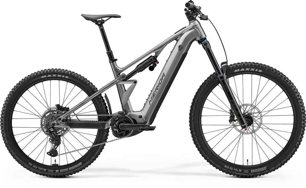The Merida eOne-Eighty 400 Electric Enduro Bike in Gunmetal Grey/Black is designed for those who crave adventure on challenging terrains. Equipped with a robust Bosch 250W motor and a 600Wh battery, this bike ensures you have the power and range to tackle long trails with ease. Its 180mm front and rear suspension travel, combined with a Shimano Cues 9-speed drivetrain, offers smooth and responsive handling. The hydraulic disc brakes provide reliable stopping power, ensuring safety on steep descents. With its durable alloy frame and high-quality components, the Merida eOne-Eighty 400 is built to deliver an exhilarating ride every time.