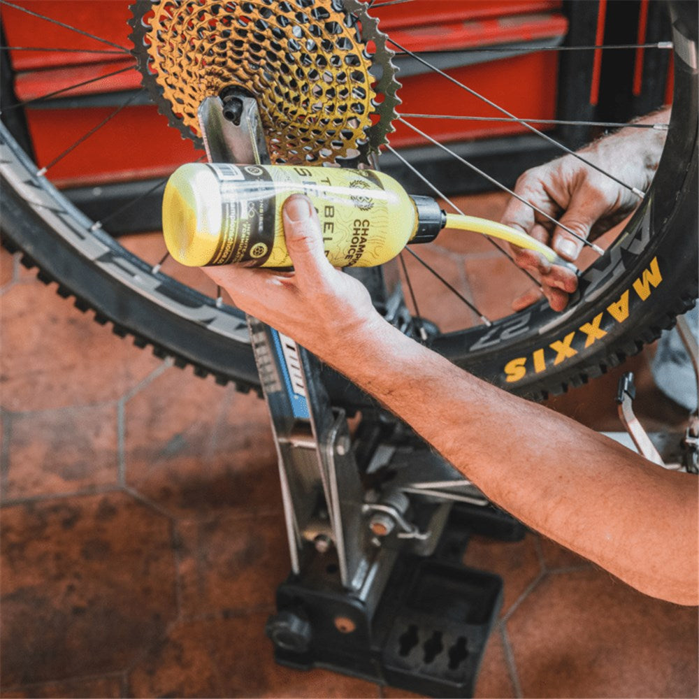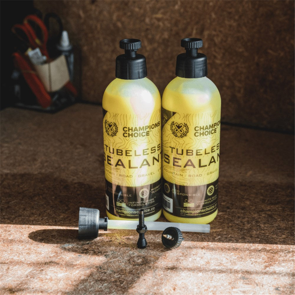 Champions Choice Microfibre Tech sealant creates a superior airtight seal so you can ride twice as far and change your sealant half as often