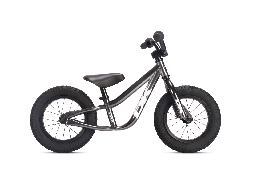The DK Nano Balance bike is a great way to introduce your child to the world of bicycle riding without the use of training wheels or a tricycle. The DK Nano has been designed from the ground up to meet the needs of children and parents alike. It includes a low-profile hi-ten steel frame with an integrated foot platform, alloy riser handlebar, 1” threadless headset and fork, 12” alloy wheels with inflatable tires, and an adjustable padded seat. With a balance bike (also known as a “push bike”) your child will learn the fundamentals of balance and bicycle control first, making the transition to pedal bike much easier.
