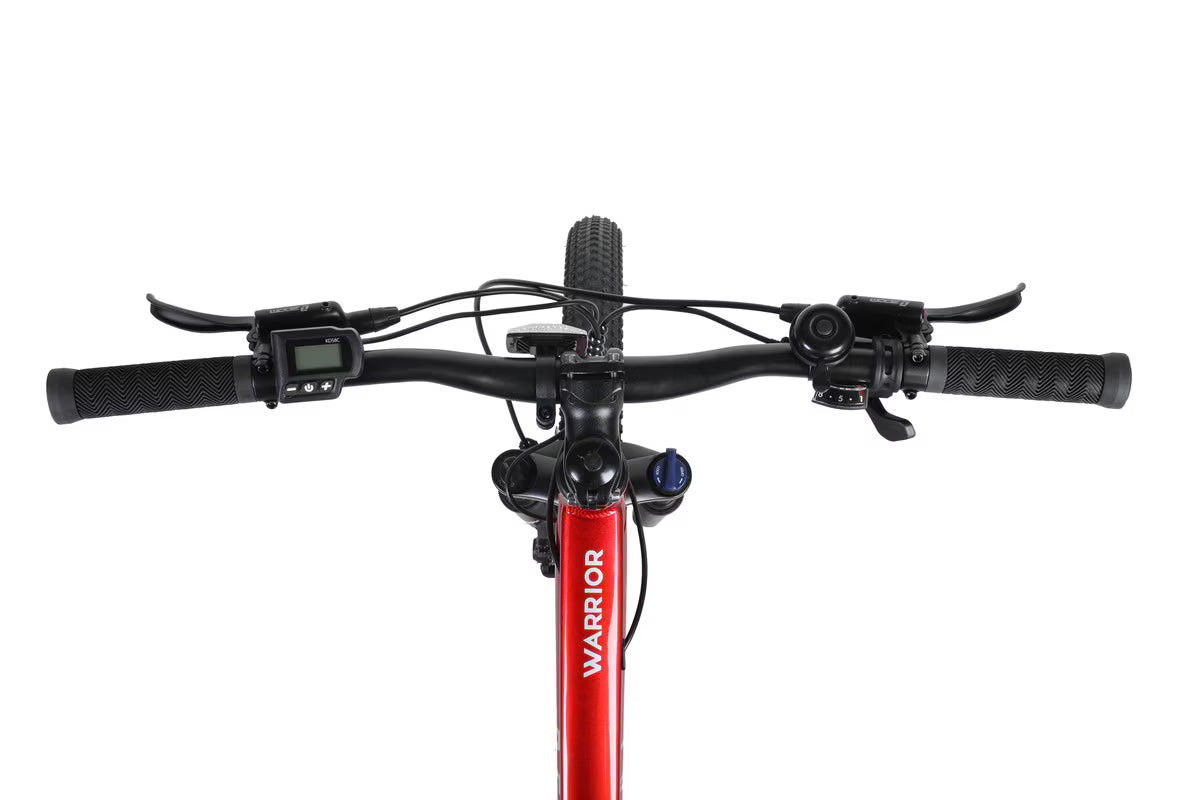 The Pedal Warrior 2 24" Electric Mountain Bike is designed for younger riders, offering the quality of an adult-sized bike. It features a lightweight alloy frame, a front lockout fork, and CST all-terrain tires, making it suitable for both gravel roads and city paths. The bike provides a comfortable riding position and uses a Shimano Altus 1 x 7 speed gearset for smooth shifting. Equipped with powerful hydraulic disc brakes, it ensures safe stopping in any weather. The 250W Bafang rear hub motor assists up to 25kph, and the 187Wh battery offers a range of 10-35 km per charge. An LCD display provides performance information, making it ideal for school commutes or family rides.