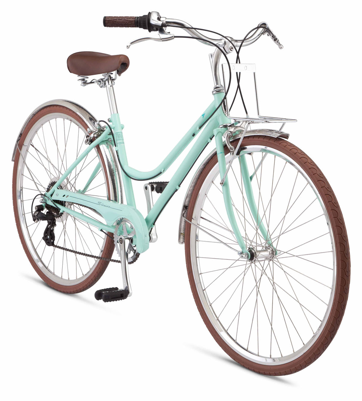 The Schwinn Traveler Cruiser Ladies Bike is a super retro, step-through comfortable cruiser. Cruise the local urban streets on a really easy to ride, stylish bike that has 7 gears to help you climb the hills. It has a pannier rack included for those days you commute to work.
