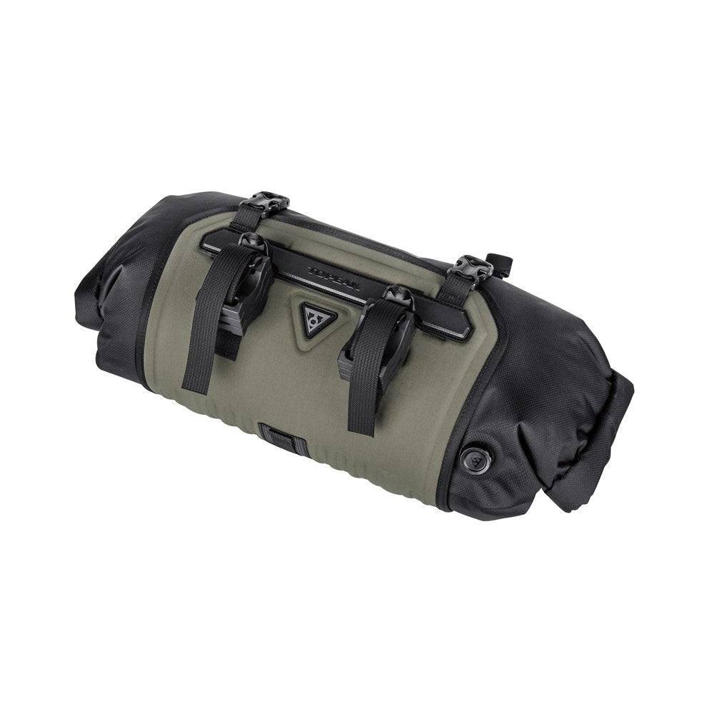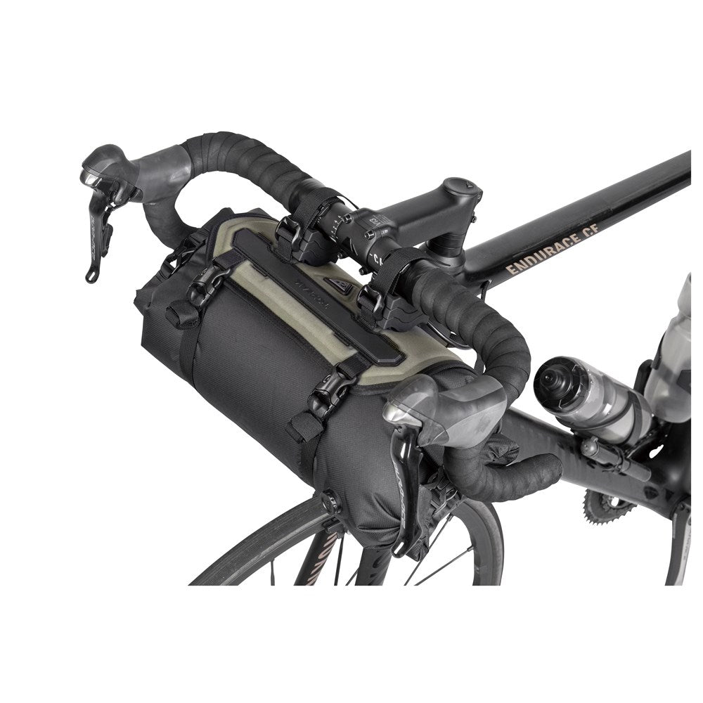 Pack all the gear you need and enjoy the freedom of bikepacking. FrontLoader is perfect for carrying light yet bulky items like sleeping bags, camping gear and spare clothing. Featuring a tough outer support harness and constructed of durable abrasion and water resistant materials, it’s easily installed or removed with two straps, special spacer mounts and quick release buckles. A backside head tube strap attachment increases load stability. An 12 liter removable waterproof drybag keeps contents completely protected from wet weather and splashes while a built-in air release button purges unwanted air from the bag to effectively compress its contents.