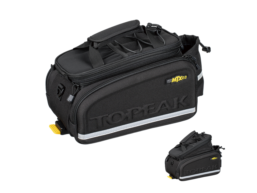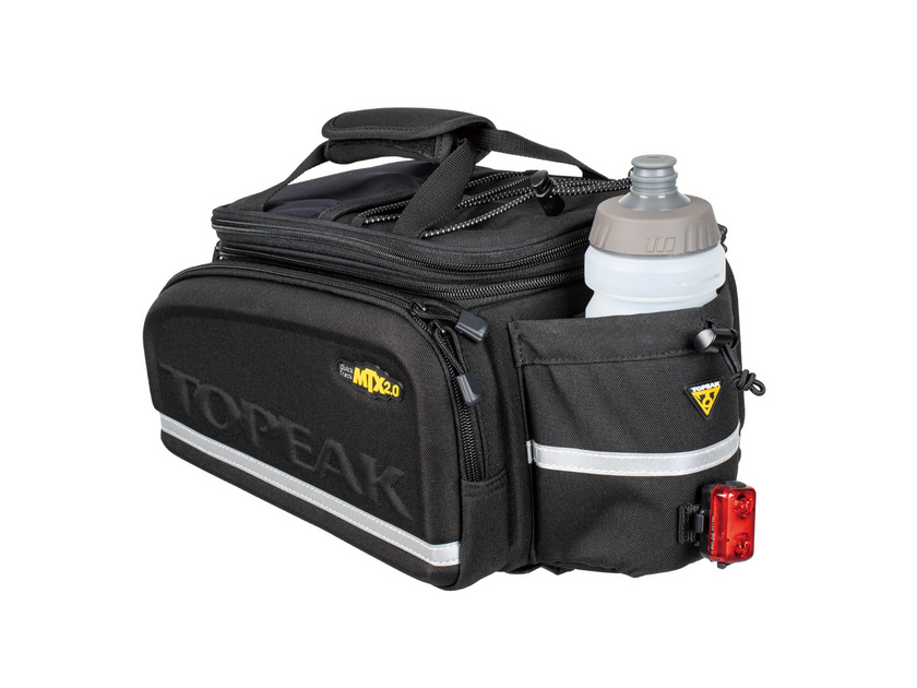 MTX TrunkBag DX featuring a divided main compartment, two zippered side pockets and rear water bottle holder. Our unique construction process combines molded panels and flexible fabric for rigidity and water repellency. Compatible with all MTX QuickTrack® 2.0 racks.